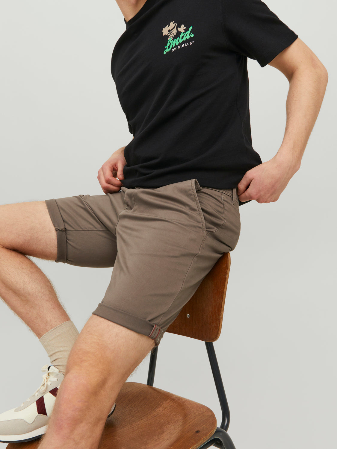 شورت الشينو قطعة أساسية في هذه الفئة. إنه يجمع بين الشورت الرسمي والشورت الكاجوال ذي الخمسة جيوب. تصميمه بسيط، مع جيوب أمامية وخلفية فقط. مصنوع من قماش مطاطي ناعم وعالي الأداء لضمان ملاءمة مثالية وراحة طوال اليوم. - نوع الموديل: شورت شينو - الخصر: ارتفاع عادي - المقاس: عادي: مقاس عادي كلاسيكي من الفخذ إلى فتحة الساق. إنه مثالي للرجل الذي يبحث عن مساحة إضافية وارتفاع عادي. يأتي مقاسنا العادي دائمًا مع مطاط لضمان مرونة كاملة. - الإغلاق: سحاب