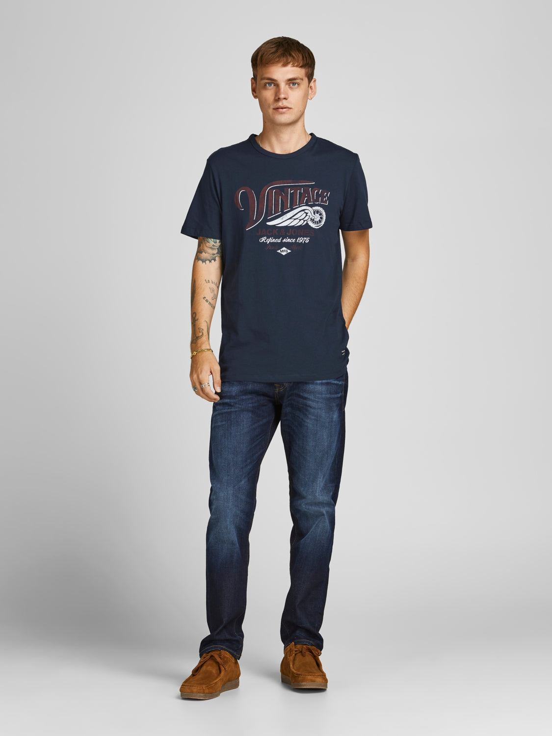 DescriptionMaterial100% CottonColournavy blazerCare InstructionsStyle Reference12190011JJENTRY TEE SS CREW NECK